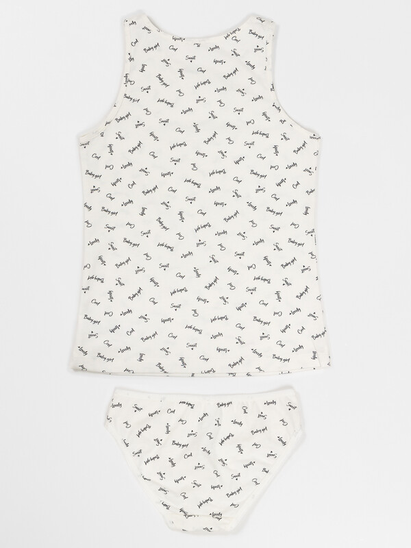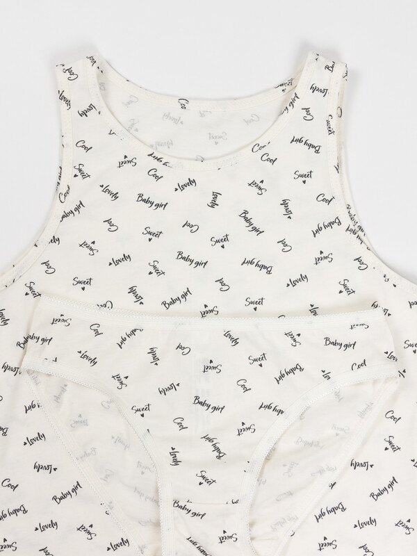 КОМПЛЕКТ ДЛЯ ДЕВОЧЕК (МАЙКА, ТРУСЫ) 447006 (140-146 (146-72), слова на св.молочном)(Mark Formelle)
