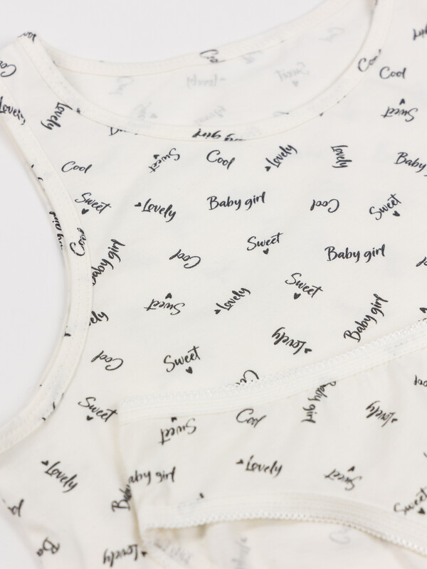 КОМПЛЕКТ ДЛЯ ДЕВОЧЕК (МАЙКА, ТРУСЫ) 447006 (92-98 (98-52), слова на св.молочном)(Mark Formelle)
