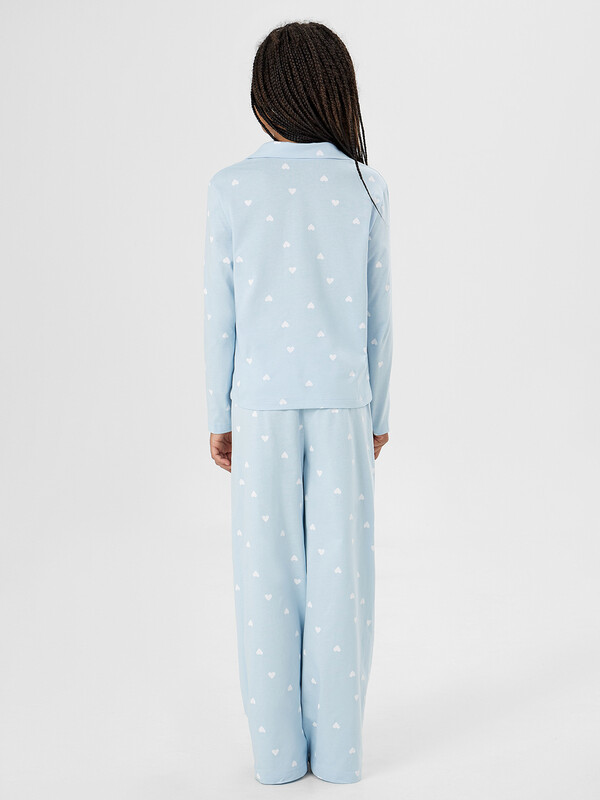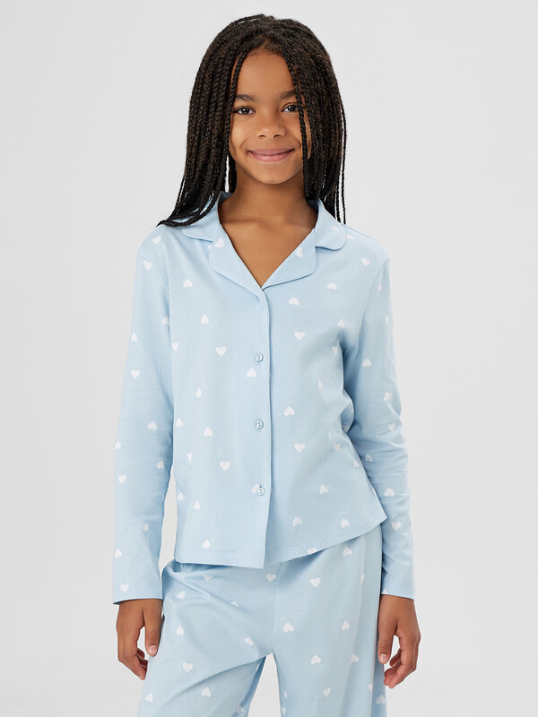 Подарите своему ребенку комфорт и очарование с домашним комплектом, созданным для приятного отдыха и активных домашних игр. В комплект входят рубашка и брюки, выполненные из мягкой хлопковой кулирки — натурального материала, который нежно заботится о коже и обеспечивает отличную воздухопроницаемость. Рубашка прямого силуэта с отложным воротником выглядит аккуратно и стильно. Спущенное плечо и длинные рукава добавляют свободы движений, а центральная застежка на пуговицы делает модель удобной и практичной. Брюки слегка расширены к низу, что придает образу легкость и современность. Эластичный пояс мягко фиксирует посадку, не сдавливая животик, а низ брюк аккуратно застрочен швом в подгибку. Этот комплект — идеальный выбор для дома: он сочетает в себе комфорт, качество и милый стиль. Подходит для отдыха, игр и уютных вечеров.