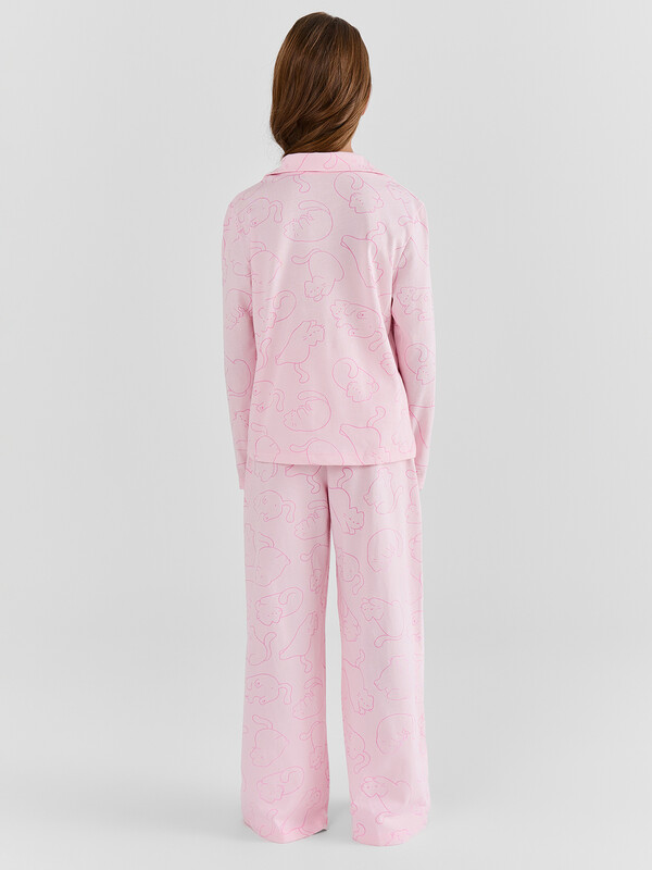 Комплект состоит из рубашки и брюк. Рубашка прямого силуэта, с отложным воротником, спинка цельнокроеная.