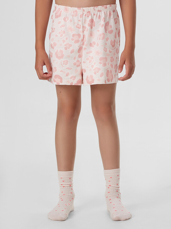 Комплект состоит из рубашки и шорт. Рубашка прямого силуэта, с отложным воротником, спинка цельнокроеная. Плечо слегка спущено. Рукав втачной, одношовный, короткий. Центральная застежка на пуговицы.