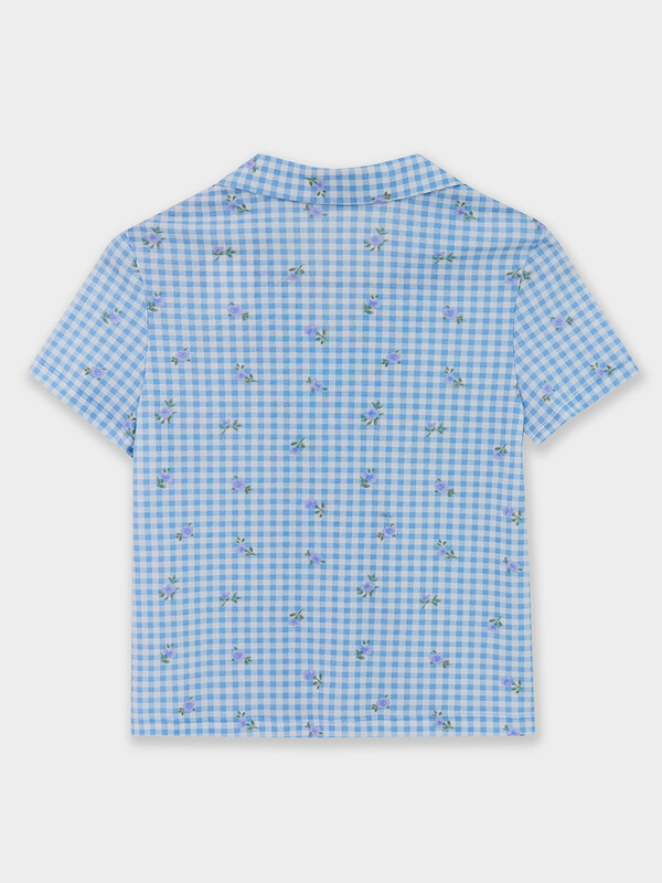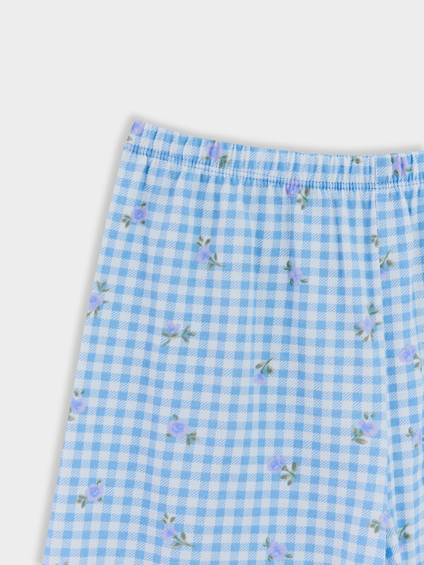 КОМПЛЕКТ ДЛЯ ДЕВОЧЕК (РУБАШКА, ШОРТЫ) 567745 (122-128 (128-64), голубая клетка с цветами)(Mark Formelle)