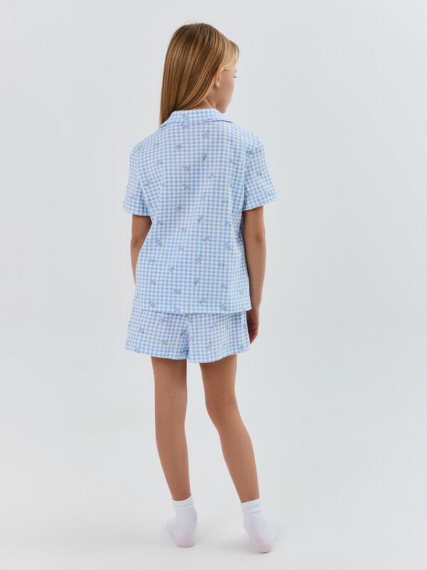 КОМПЛЕКТ ДЛЯ ДЕВОЧЕК (РУБАШКА, ШОРТЫ) 567745 (150-152 (152-76), голубая клетка с цветами)(Mark Formelle)