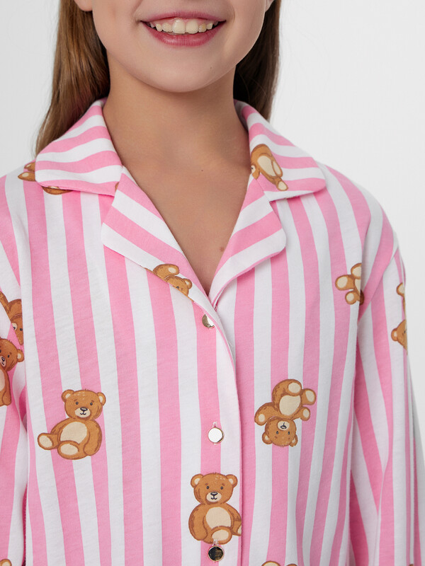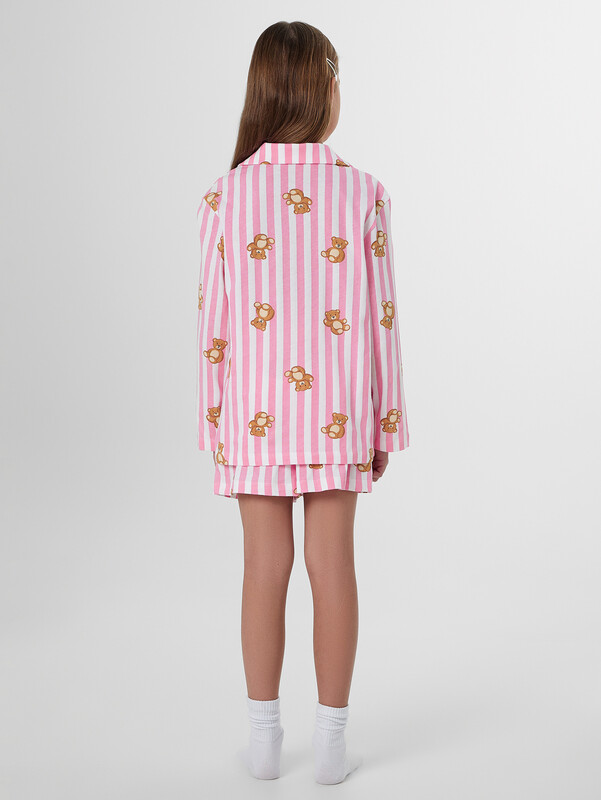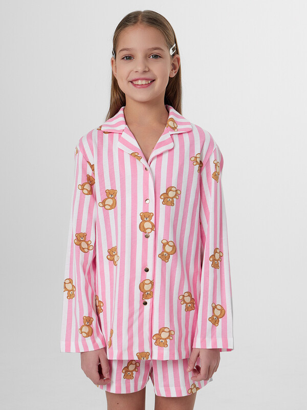 Комплект для девочек состоит из рубашки и шортов.