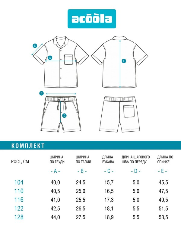 Комплект для мальчиков ((1)сорочка верхняя и (2)шорты Rokko