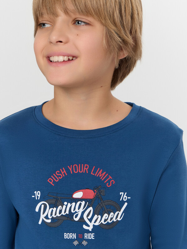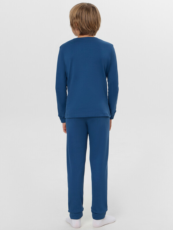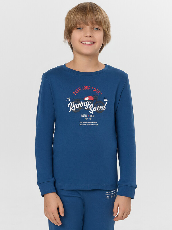 Пижама для мальчиков с надписью "Be wild. Be free" ("Будь диким. Будь свободным") — это комплект для смелых и активных ребят. В набор входит свободный джемпер и прямые брюки, сшитые из мягкой дышащей ткани, которая не раздражает кожу даже во время сна.