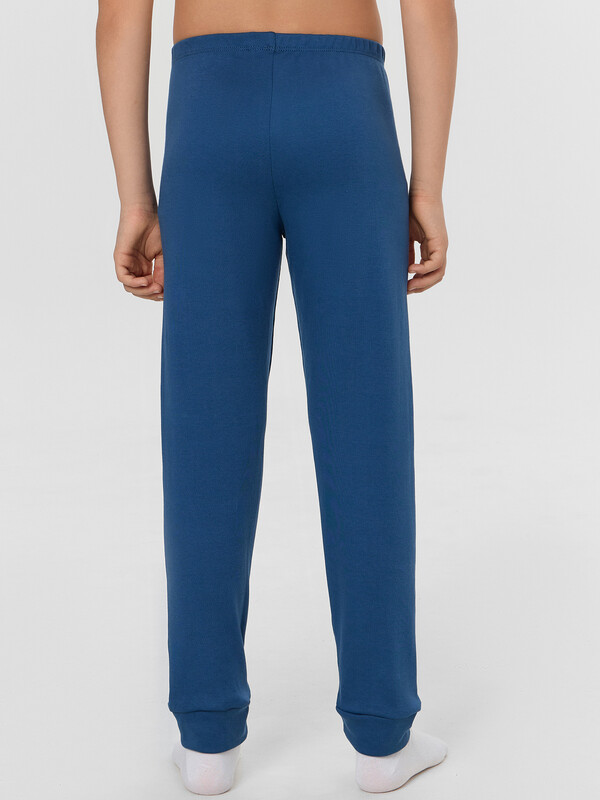 Джемпер с круглой горловиной и удлиненными рукавами на манжетах удобно сидит по фигуре, не сковывая движения. Низ изделия аккуратно подогнут для опрятного вида. Брюки с широким эластичным поясом мягко фиксируются на талии, а манжеты внизу не дают им задираться во время активных игр или отдыха.