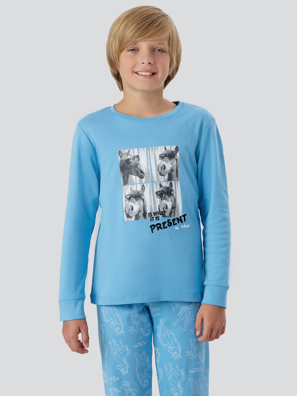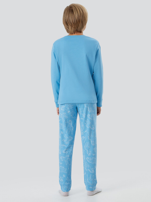 Пижама для мальчиков с надписью "Be wild. Be free" ("Будь диким. Будь свободным") — это комплект для смелых и активных ребят. В набор входит свободный джемпер и прямые брюки, сшитые из мягкой дышащей ткани, которая не раздражает кожу даже во время сна.
