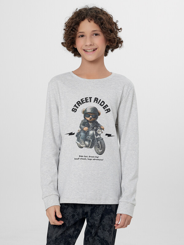 Пижама для мальчиков с надписью "Be wild. Be free" ("Будь диким. Будь свободным") — это комплект для смелых и активных ребят. В набор входит свободный джемпер и прямые брюки, сшитые из мягкой дышащей ткани, которая не раздражает кожу даже во время сна.
