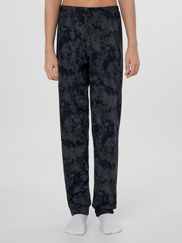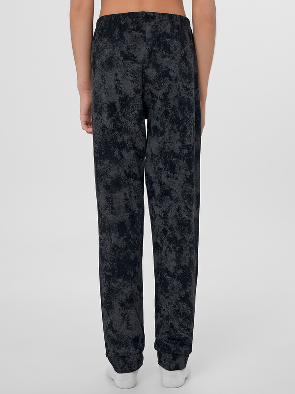 Джемпер с круглой горловиной и удлиненными рукавами на манжетах удобно сидит по фигуре, не сковывая движения. Низ изделия аккуратно подогнут для опрятного вида. Брюки с широким эластичным поясом мягко фиксируются на талии, а манжеты внизу не дают им задираться во время активных игр или отдыха.