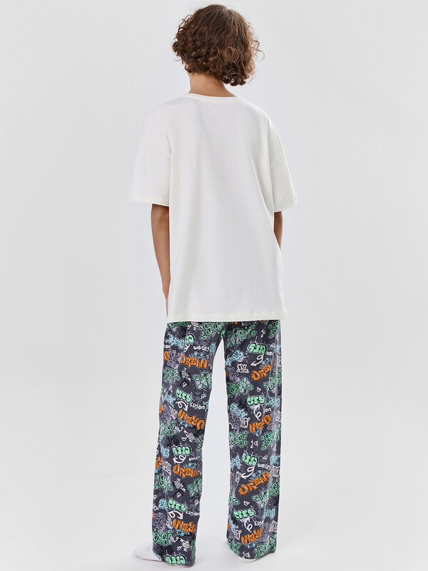 КОМПЛЕКТ ДЛЯ МАЛЬЧИКОВ (ДЖЕМПЕР, БРЮКИ) 563337 (158-164 (164-84-72), св.молочный +надписи на графите)(Mark Formelle)