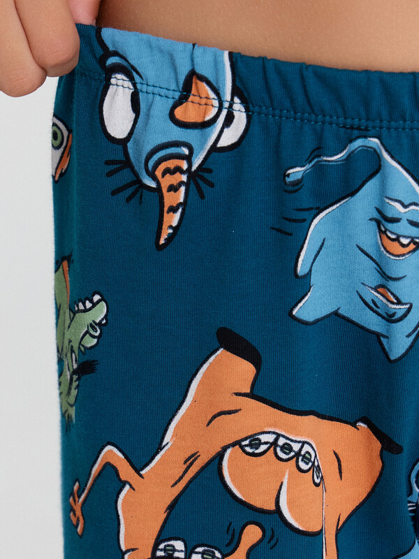 Оригинальный детский комплект для мальчиков из высококачественного хлопка. Состоит из футболки с коротким рукавом и длинных брюк с эластичной резинкой в поясе. Брюки завершаются манжетами. Изготовлена пижама для мальчика из натурального материала, что обеспечивает комфорт как в летний, так и в зимний период. Отлично тянется, хорошо впитывает влагу и быстро сохнет, не сковывает движений и не создает парникового эффекта. Лучший вариант для каждодневной носки. В линейке много интересных расцветок, есть варианты с принтами. Широкий размерный ряд. Рекомендуем!