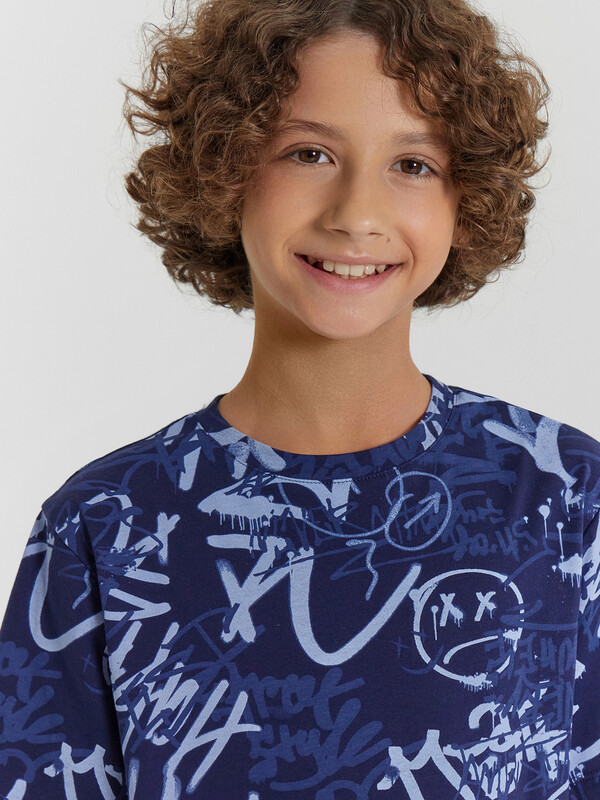 Повседневная пижама для мальчиков из высококачественного хлопка. Состоит из футболки с коротким рукавом и длинных брюк с эластичной резинкой в поясе. Брюки завершаются манжетами. Изготовлена пижама для мальчика из высококачественного натурального материала, что обеспечивает комфорт как в летний, так и в зимний период. Материал отлично тянется, хорошо впитывает влагу и быстро сохнет, не сковывает движений и не создает парникового эффекта. Отличный вариант для каждодневной носки. Пижама детская для подростка мальчика отлично подходит для отдыха в комфортной домашней обстановке и сна. В линейке много интересных расцветок, есть красивые варианты с принтами. Если вы устали от простых и незамысловатых моделей и хотите разнообразить гардероб вашего ребенка, этот вариант порадует. Такая пижама понравится всем мальчикам и подросткам, ведь она выполнена в ярких цветах и украшена рисунками. Купить пижаму детскую недорого можно у нас на сайте и в магазинах Mark Formelle!