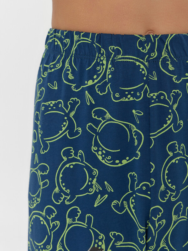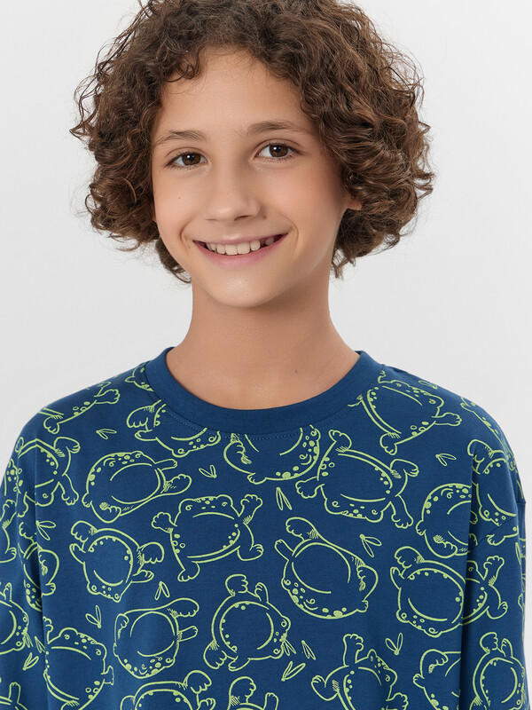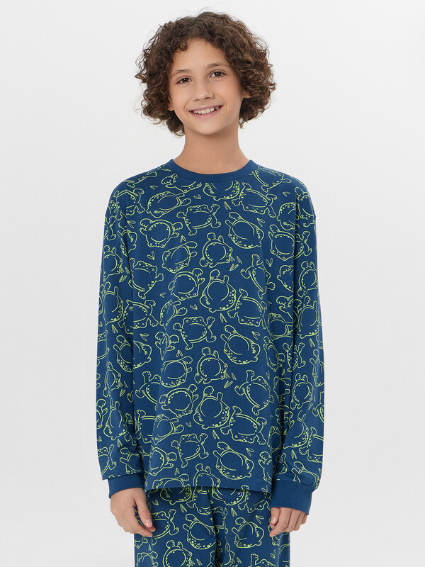 Костюм домашний для мальчиков с принтом создан для комфорта и свободы движений. Мягкая ткань, состоящая из хлопка обеспечивает приятные тактильные ощущения и хорошо пропускает воздух, сохраняя оптимальную температуру тела. Круглая горловина с отделкой из рибаны мягко облегает шею.