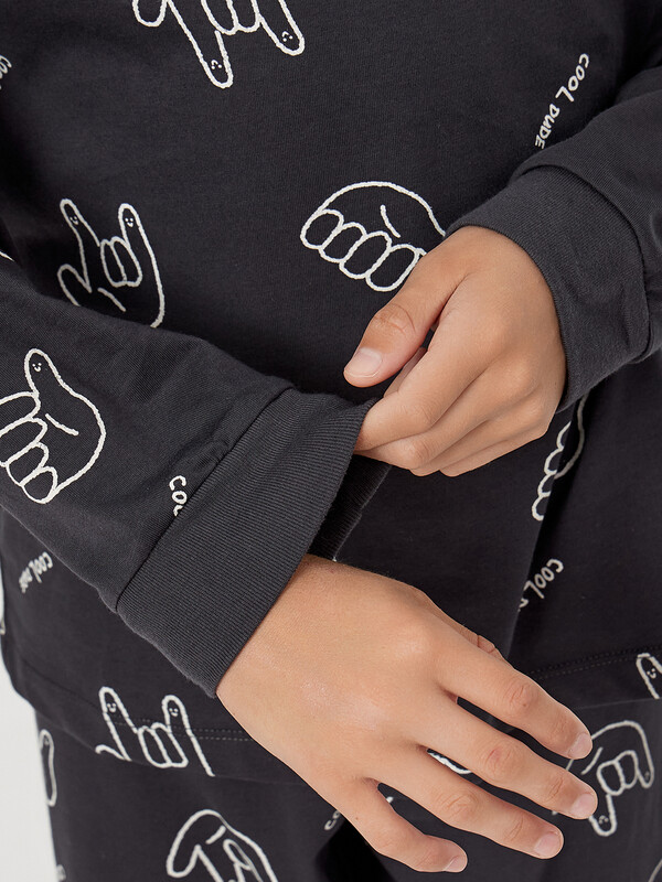 Рукава длинные втачные, со слегка спущенным плечом, низ рукавов с притачными манжетами. Низ лонгслива обработан швом в подгибку.