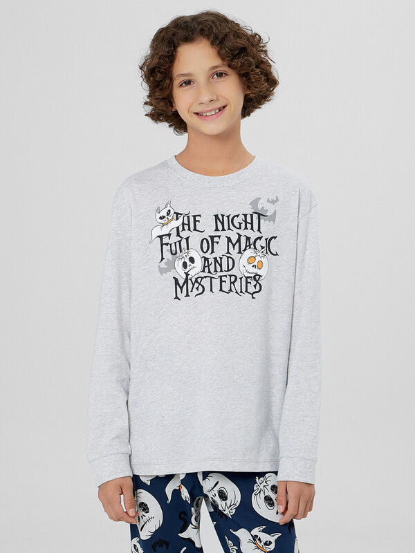 Артикул: 563333 серый меланж 4306-А +привидения на синем 18113