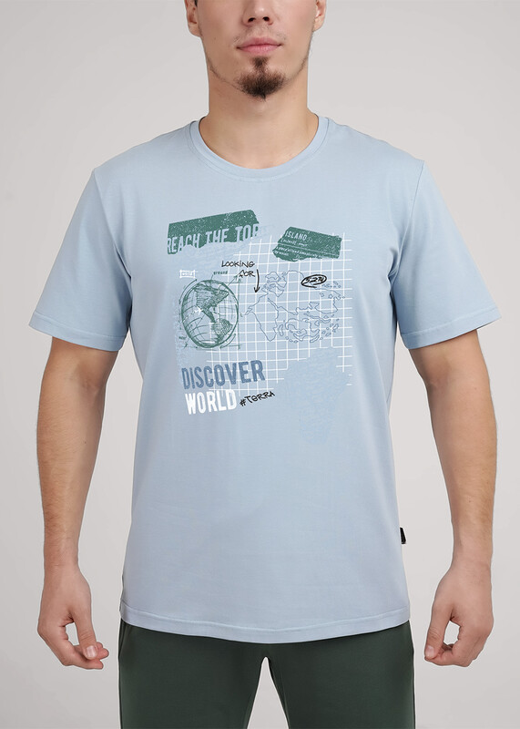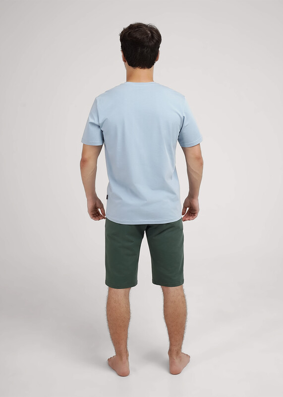 Комплект мужской для дома состоящий из футболки и шорт. Футболка из трикотажного полотна с круглым вырезом горловины, коротким рукавом и стильным принтом. Шорты из плотного трикотажного полотна на эластичном поясе с функциональными карманами и шнуром.