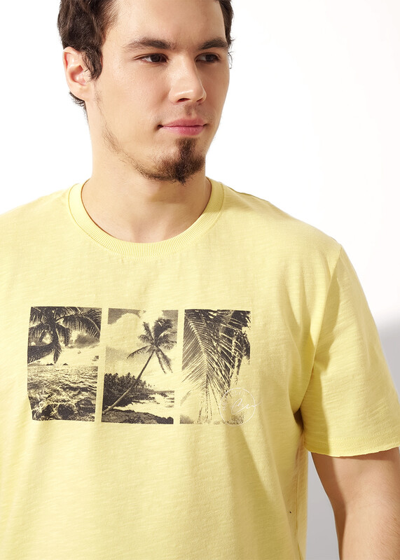 Набор мужской для дома состоящий из футболки и шорт. Футболка из фактурного трикотажного полотна ""флам"" с круглым вырезом горловины, с открытыми срезами и стильным принтом. Шорты из поплина на эластичном поясе с функциональными карманами и шнуром.