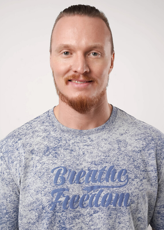 Комплект мужской для дома состоящий из футболки и шорт. Футболка из трикотажного полотна с круглым вырезом горловины, коротким рукавом и стильным принтом. Шорты из трикотажного полотна на эластичном поясе с функциональными карманами и шнуром.