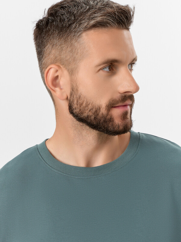 Нижний срез футболки и рукавов обработан швом вподгибку.