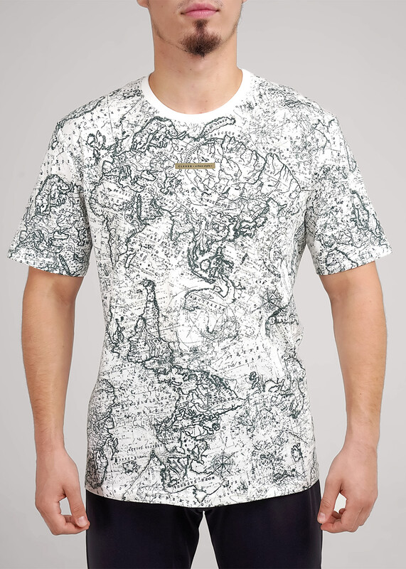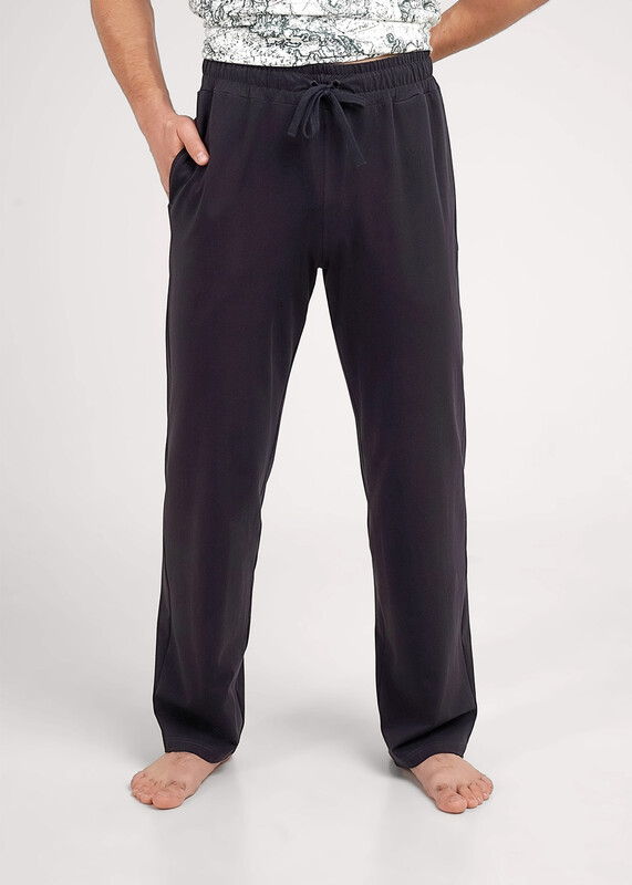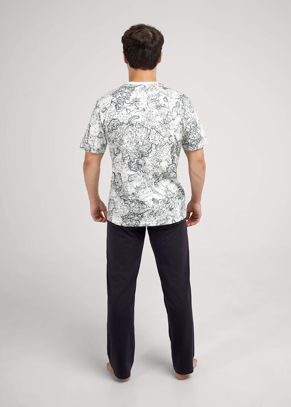 Комплект мужской состоящий из футболки и брюк. Футболка из трикотажного полотна в набивку с коротким рукавом и дизайнерской нашивкой. Брюки из футера на широком поясе с резинкой и регулируемым шнуром, по бокам удобные карманы.