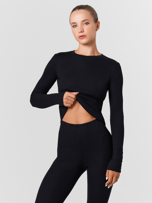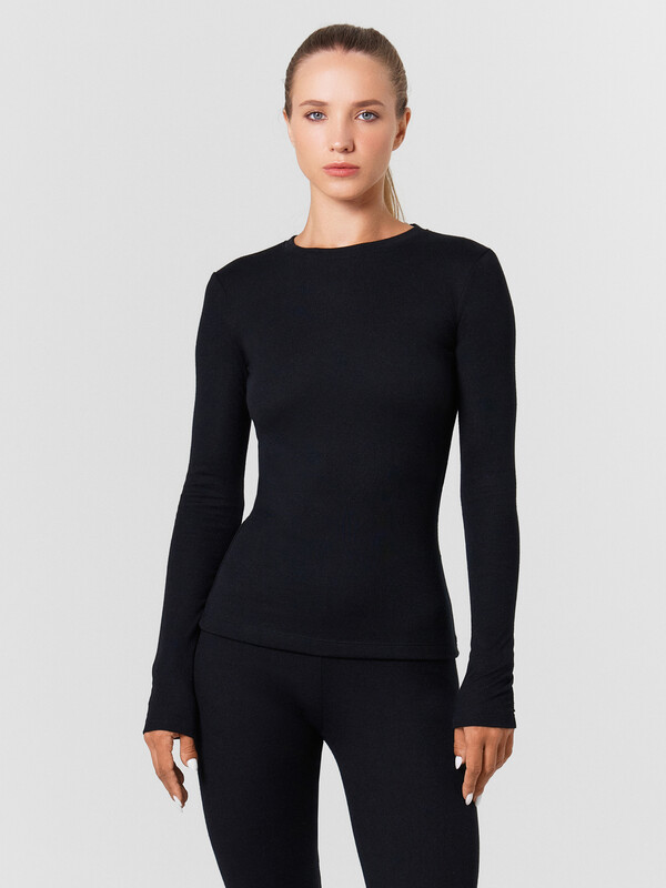 Ультратонкие волокна образуют воздушные прослойки, которые надёжно сохраняют тепло и блокируют холод. Нежная текстура материала приятна к коже и не создаёт объёма. Фуфайка полуприлегающего силуэта и легинсы с эластичным поясом обеспечивают идеальную посадку, оставаясь совершенно незаметными под одеждой.