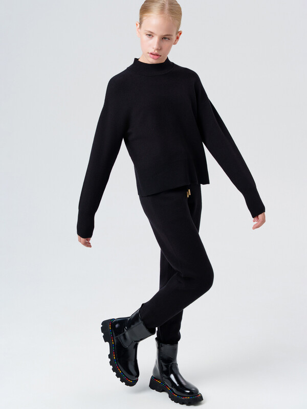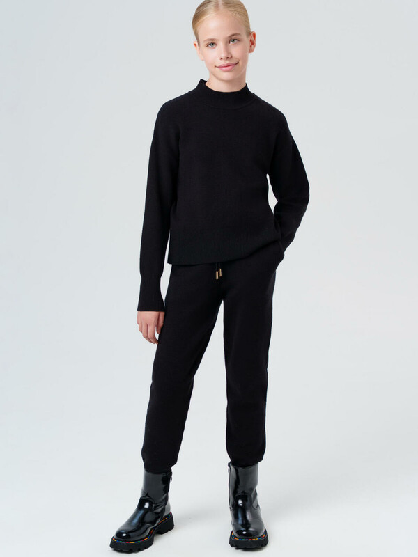 Комплект трикотажный для девочек: джемпер, брюки (140, черный)(PlayToday)