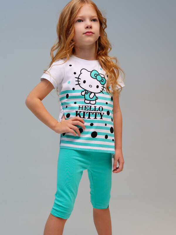 Костюм детский для девочки. Футболка, укороченные леггинсы из эластичного и приятного на ощупь трикотажа джерси. Леггинсы на резинке. Высокое содержание хлопка 95%. Благодаря наличию эластана в составе ткани изделие держит форму и меньше мнется. Модель выполнена из качественного и приятного на ощупь трикотажа.