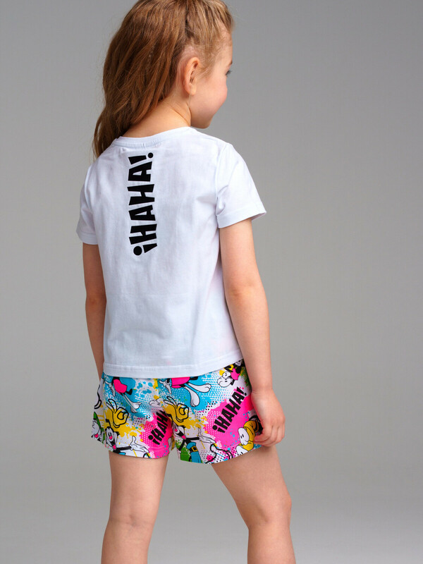 Комплект: футболка regular fit, шорты из качественного и приятного на ощупь трикотажа джерси. Высокое содержание хлопка 95%. Благодаря наличию эластана в составе ткани изделие проще в уходе и держит форму. Функциональные карманы в боковых швах. Эластичный пояс со шнурком.