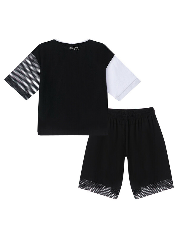 Комплект: футболка oversize и шорты из качественного эластичного и приятного на ощупь трикотажа. Футболка выполнена из трикотажа разных цветов и декорирована сеткой. Шорты с карманами в боковых швах, декорированы сеткой. Эластичный пояс со шнурком. Высокое содержание хлопка 95%. Благодаря наличию эластана в составе ткани изделие держит форму и меньше мнется.