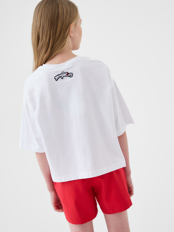 Костюм для девочки подростка. Состоит из футболки и шорт. Выполнен из хлопкового трикотажа. Футболка оверсайз, с коротким рукавом. Яркий принт с любимым персонажем "Леди Баг и Супер-Кот". Шорты свободные, с эластичным поясом и шнурком для регулировки посадки. По бокам расположены карманы.