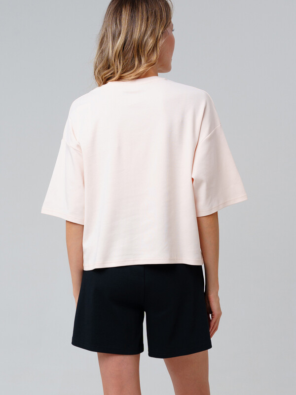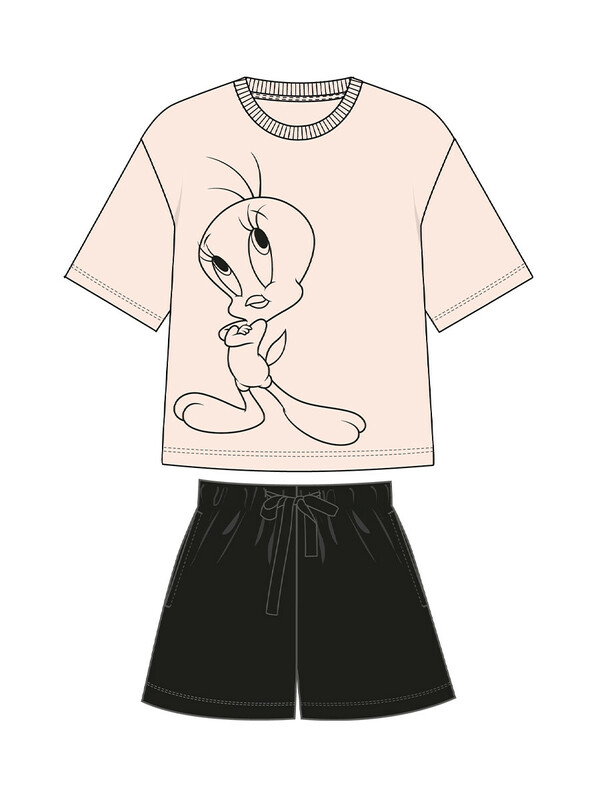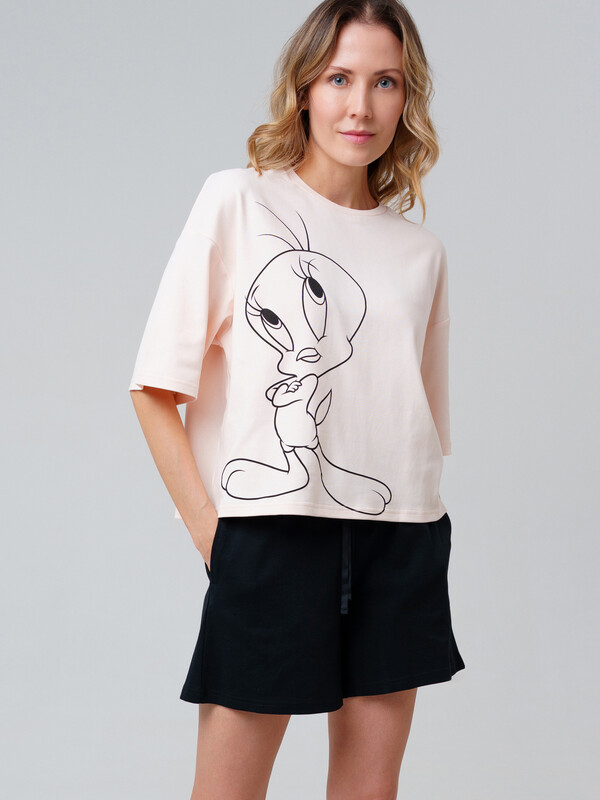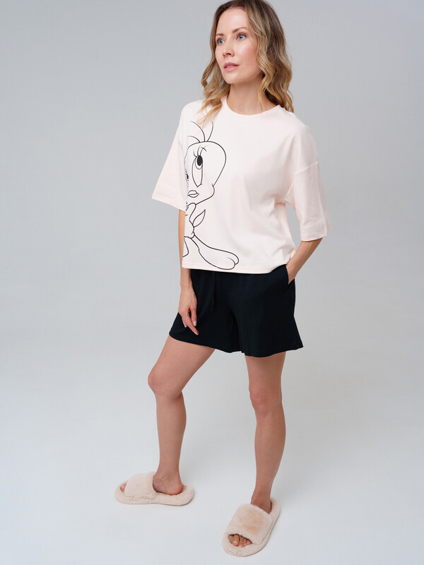 Комплект трикотажный для женщин: фуфайка (футболка), шорты (M, бежевый,черный)(PlayToday)