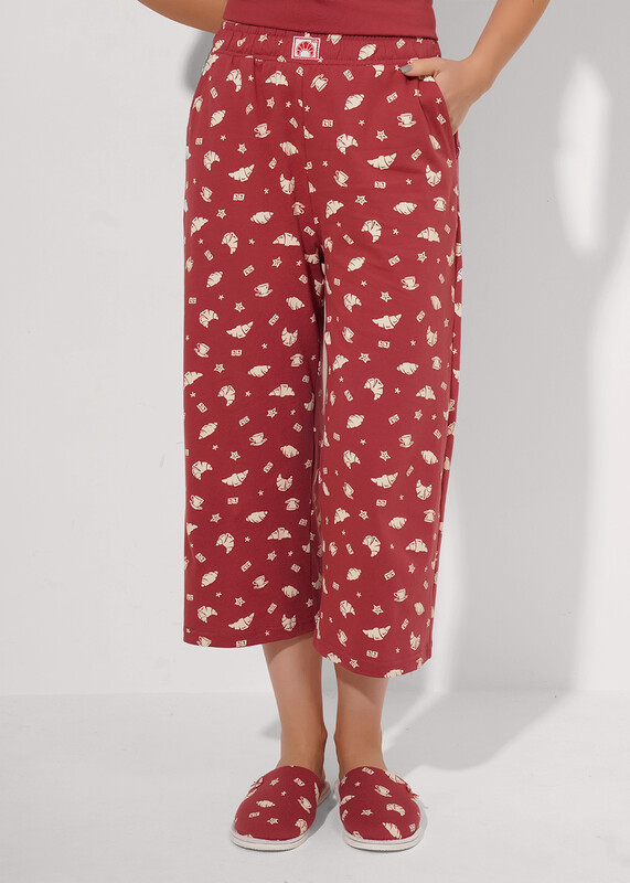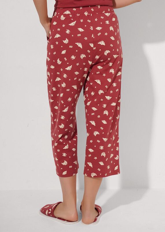 Набор одежды для дома и отдыха из хлопкового трикотажного полотна. Футболка прямого кроя. Короткий втачной рукав. Округлая горловина с обтачкой. Спереди принт. Бриджи с поясом на внутренней резинке, спереди нашивка. Боковые карманы с отрезным бочком.