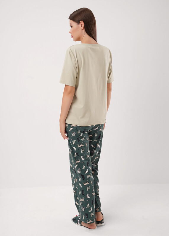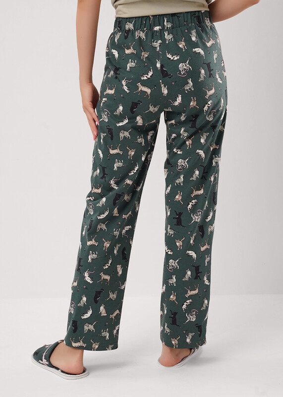 Набор одежды из трикотажного полотна. Футболка прямого кроя. Короткий втачной рукав. По горловине обтачка. Спереди накладной карман, принт.По низу рукава и изделия необработанный срез.Брюки с поясом на резинке. Боковые карманы с отрезным бочком и кантом.