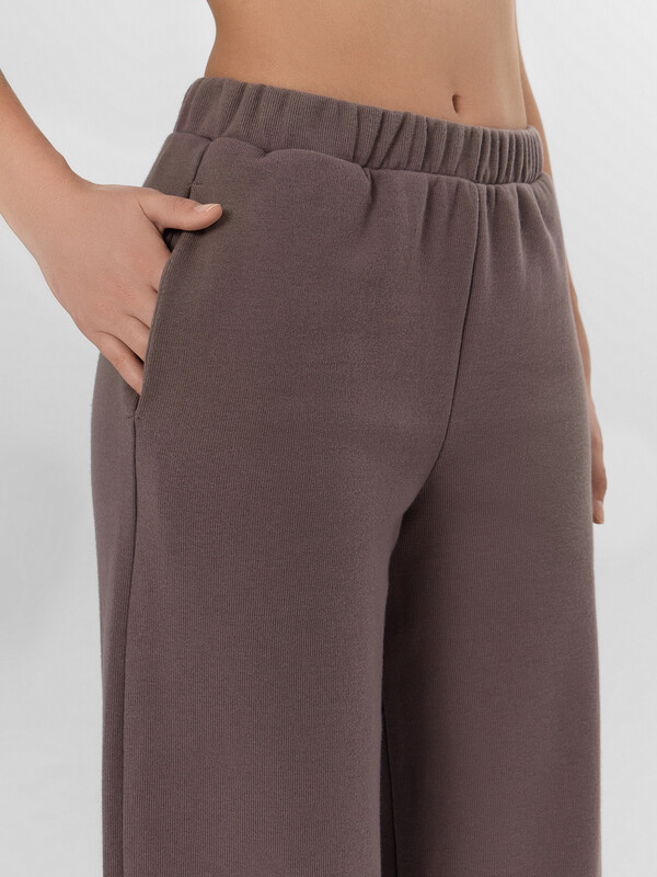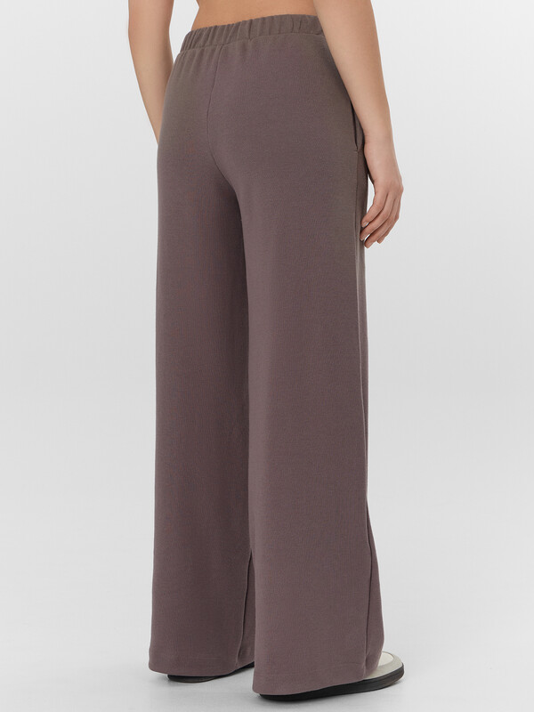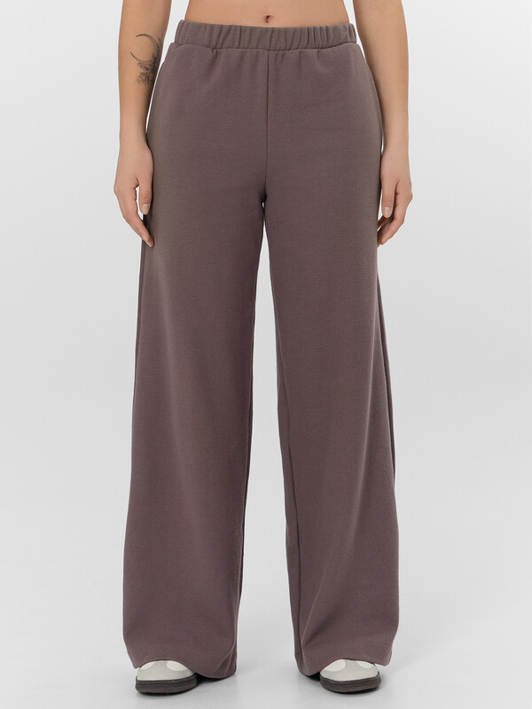 Брюки прямого силуэта, пояс отрезной внутри с резиной 40RV. В боковых швах карманы. Низ изделия обработан швом в подгибку.
