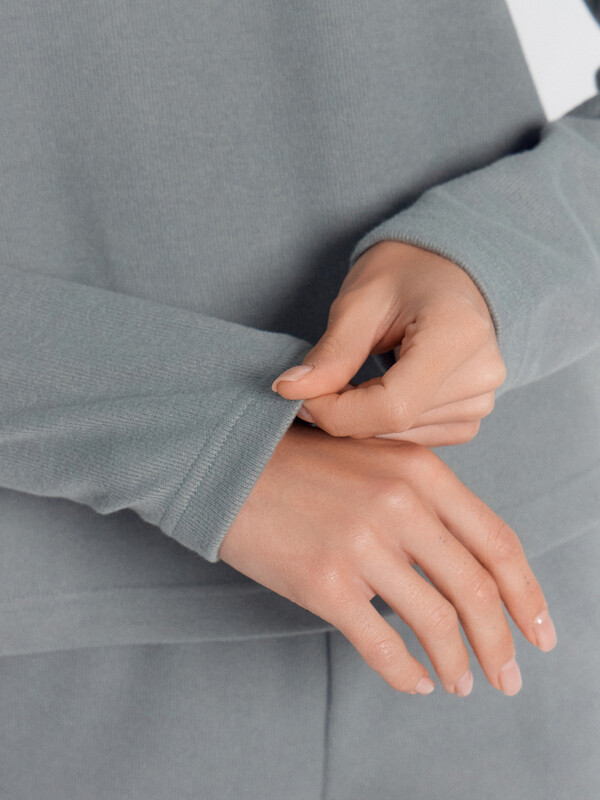 Джемпер женский свободного силуэта. Горловина круглой формы с обтачкой из основного полотна. Рукав спущенный. Рукава и низ джемпера обработаны швом в подгибку.