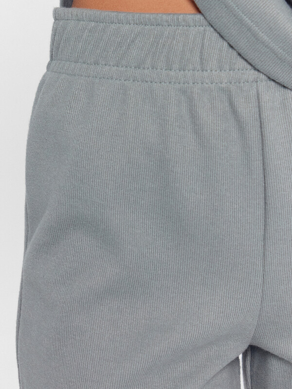 Брюки с посадкой на талии, прямые заужены к низу . Пояс цельнокроеный с резиной внутри. Низ брюк обработан швом в подгибку.