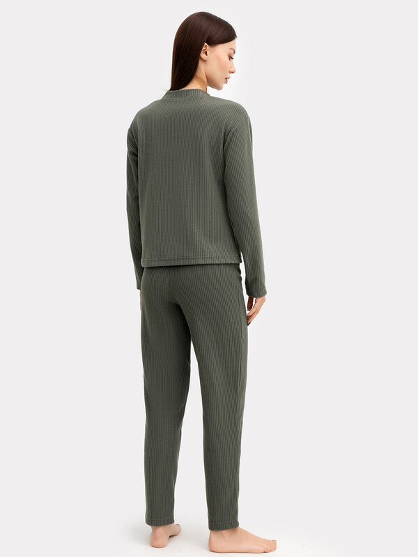 Брюки с посадкой на талии, прямые заужены к низу . Пояс цельнокроеный с резиной внутри. Низ брюк обработан швом в подгибку.