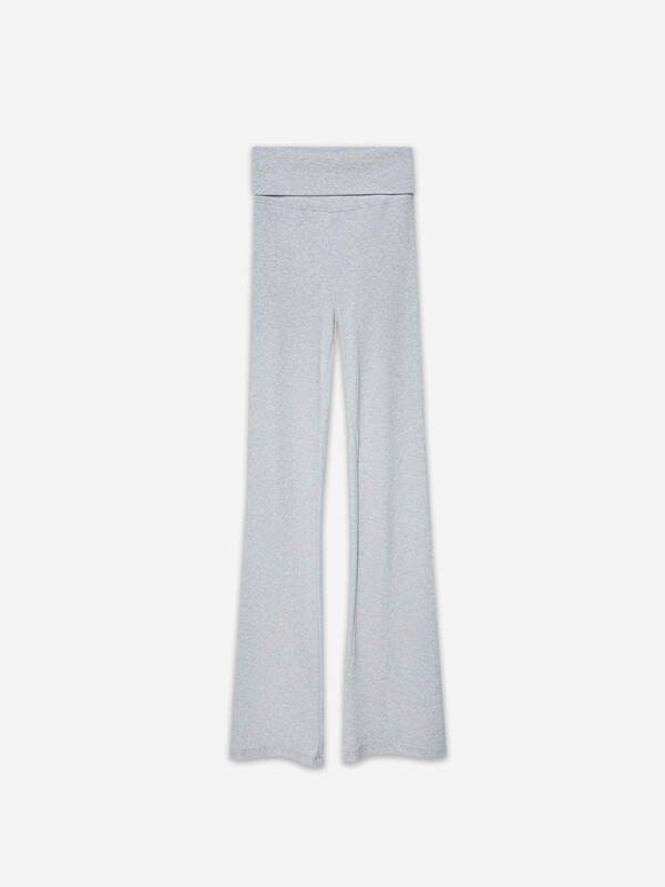 Комплект состоит из джемпера и брюк. Джемпер прилегающего силуэта. Горловина круглой формы обработана обтачкой из основного полотна, шов втачивания обтачки по спинке закрыт бейкой из основного полотна. Рукава втачные короткие. Нижний срез джемпера и рукавов обработан швом вподгибку. Брюки клеш, посадка средняя. Пояс отрезной широкий с отворотом. По шву втачивания отворота в припуск вставлена эластичная тесьма 6мм (жилка тканая WT4-6 Arteks E7112). Нижний срез брюк обработан швом вподгибку.