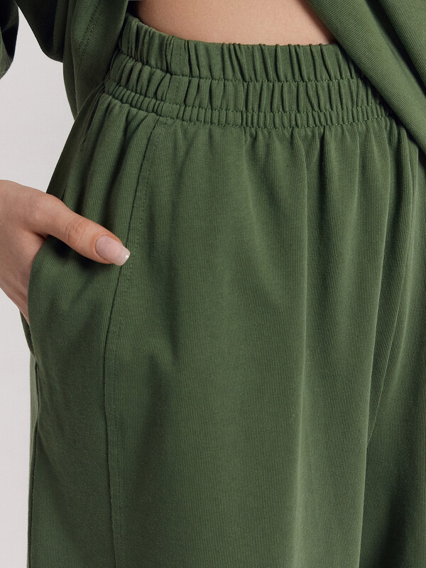 Женский комплект из коллекции Premium Base - это удобство, стиль и качество в одной модели. Джемпер свободного прямого силуэта с укороченной длиной прекрасно подчеркивает непринужденность и современность образа. Круглая горловина с аккуратной обтачкой из рибаны придаёт изделию лаконичность, а короткие рукава делают модель универсальной для любой погоды. Нижние срезы джемпера обработаны швом вподгибку, что добавляет ему практичности и долговечности. Шорты с высокой посадкой и прямым свободным кроем обеспечивают комфорт и свободу движений. Эластичный пояс гарантирует удобную посадку, а боковые карманы в швах добавляют функциональности. Нижние срезы шорт также обработаны швом вподгибку для аккуратного и стильного вида. Комплект, выполненный из высококачественной хлопковой кулирки, станет отличным выбором для создания повседневных стильных образов. Практичность и изысканность в каждой детали от Mark Formelle!