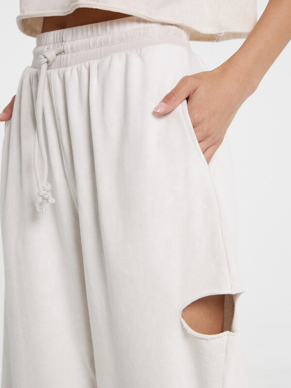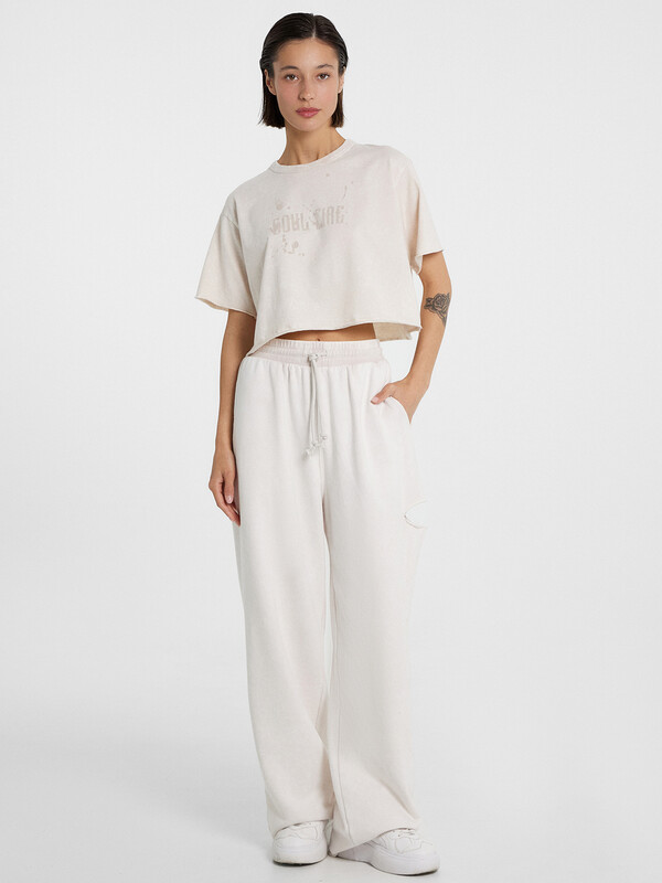 Повседневный женский комплект состоит из модной укороченной футболки и брюк. Футболка из мягкого трикотажного полотна - кулирки. Горловина круглой формы окантована эластичной рибаной. Плечи слегка спущены, пройма углублена. Рукава футболки короткие. Брюки из трикотажного футера без подчеса. Пояс отрезной, с вшитой эластичной тесьмой, позволяющей регулировать посадку. Длина брюк - полная, низ брюк имеет сырой срез. Выбранные материалы: кулирка и футер - обеспечивают высокий уровень комфорта и мягкость при носке. Свободный крой комплекта подчеркивает современную эстетику casual стиля, делая его идеальным выбором для прогулок, занятий спортом или создания городских образов. Широкий размерный ряд. Рекомендуем!