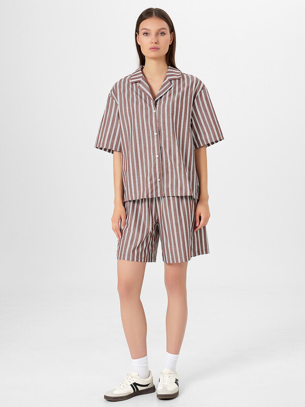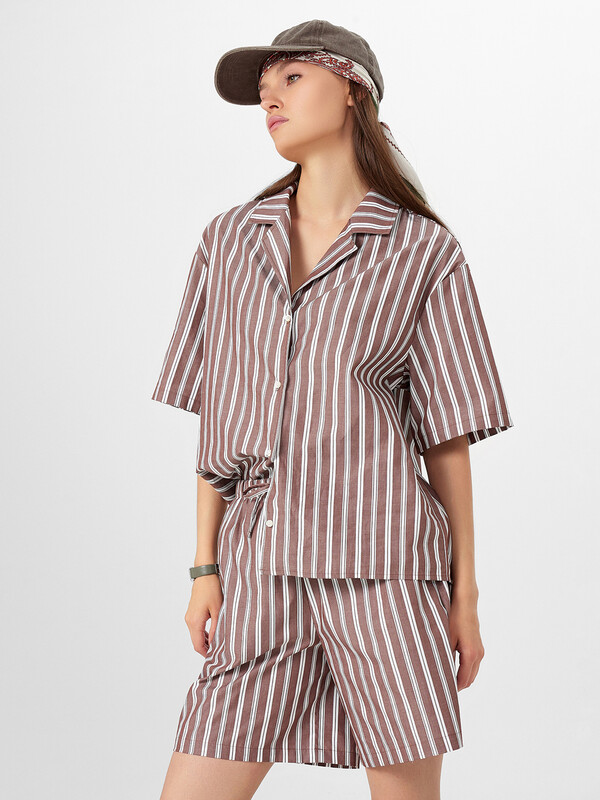 Этот женский комплект — идеальное дополнение весенне-летнего гардероба. Свободная укороченная рубашка с V-образной горловиной создает легкий и непринужденный образ, а короткие широкие рукава и спущенное плечо добавляют расслабленный силуэт. Центральная застежка на петли и пуговицы обеспечивает удобство, а обработанные швы делают изделие аккуратным и долговечным. Свободные шорты со средней посадкой и эластичным поясом на кулиске обеспечивают комфортную посадку. Боковые карманы добавляют практичность, позволяя удобно разместить небольшие вещи. Выполненный из натурального хлопка, этот комплект приятно ощущается на коже, позволяя дышать и чувствовать себя комфортно в жаркие дни. Отличный выбор для прогулок, отдыха или активного времяпровождения!