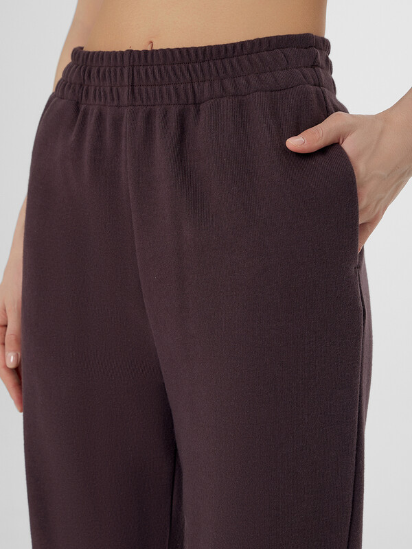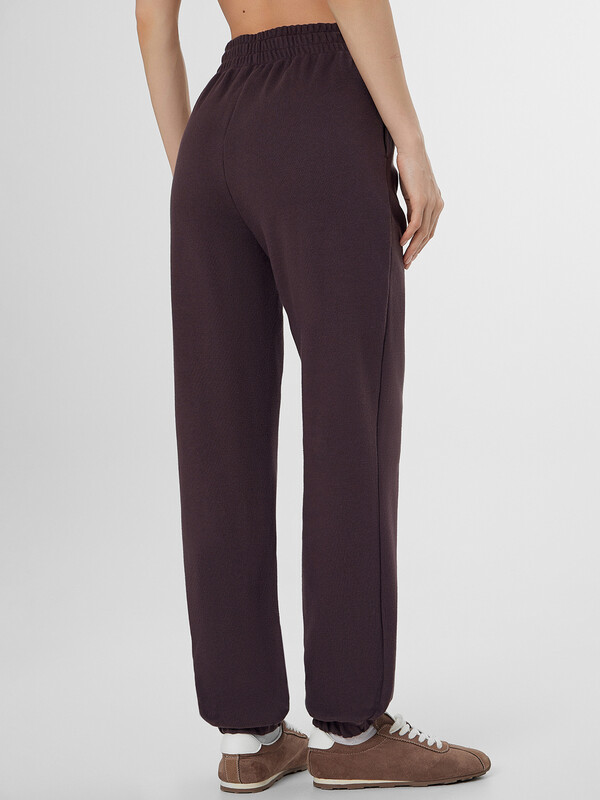 Джоггеры свободного силуэта с цельнокроеным поясом и мягкой резинкой внутри обеспечивают комфортную посадку на талии. В боковых швах расположены удобные карманы, а низ штанин обработан с эластичной тесьмой для аккуратного прилегания к щиколотке.