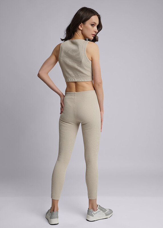Универсальный костюм из кашкорсе для занятий спортом или отдыха. Топ на широкой бретели. Леггинсы с широким поясом на внутренней резинке.