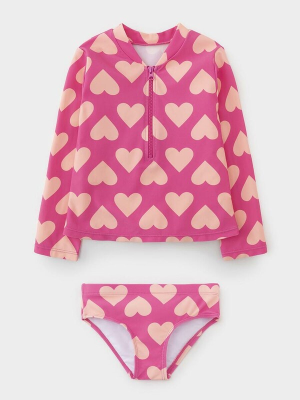 Купальный костюм для девочки. Верхняя часть застёгивается на молнию. В плавках эластичная резинка. Внутри подклад. Оригинальная набивка выполнена из стойких гипоаллергенных красителей.