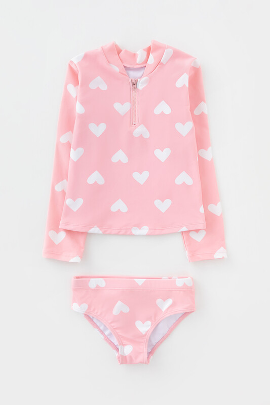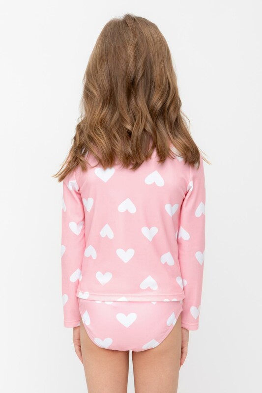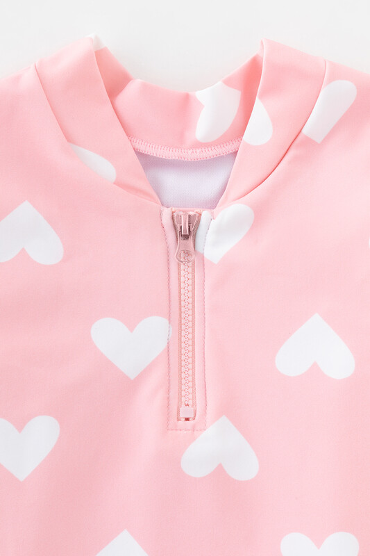 Купальный костюм для девочки. Верхняя часть застегивается на молнию. Оригинальная набивка выполнена из стойких гипоаллергенных красителей.