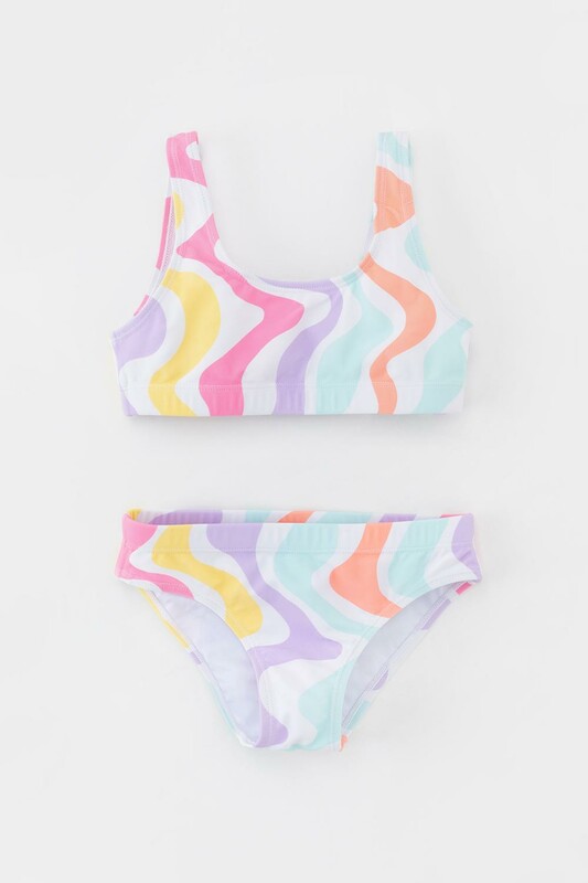 Раздельный купальник для девочки. Топ на эластичных лямках и плавки на резинке . Оригинальная набивка выполнена из стойких гипоаллергенных красителей.