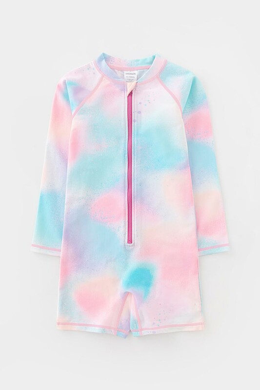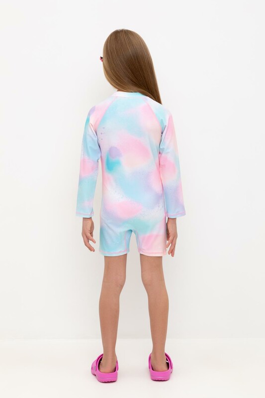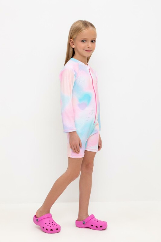 Купальник для девочки. Застегивается спереди на замок. На замке предусмотрена защита для подбородка. Оригинальная набивка выполнена из стойких гипоаллергенных красителей.