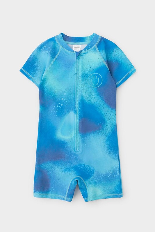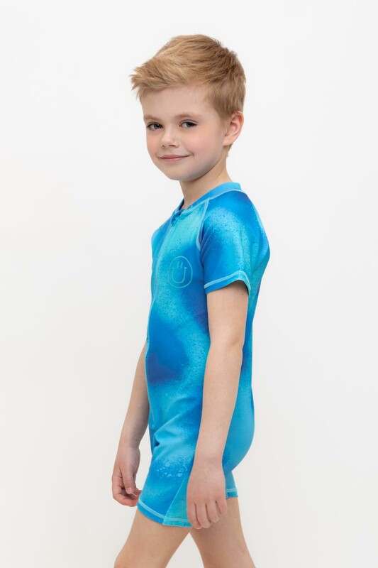 Купальник для мальчика. Застегивается спереди на замок. На замке предусмотрена защита для подбородка. На груди и спинке принт. Оригинальный принт выполнен из стойких гипоаллергенных красителей.
