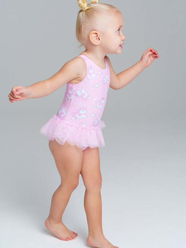 Купальник слитный детский для девочки. Купальник для пляжа и бассейна выполнен из быстросохнущего материала. Благодаря хлор-защите и UF-защите ткань сохраняет первоначальный вид даже при длительном пребывании на солнце.